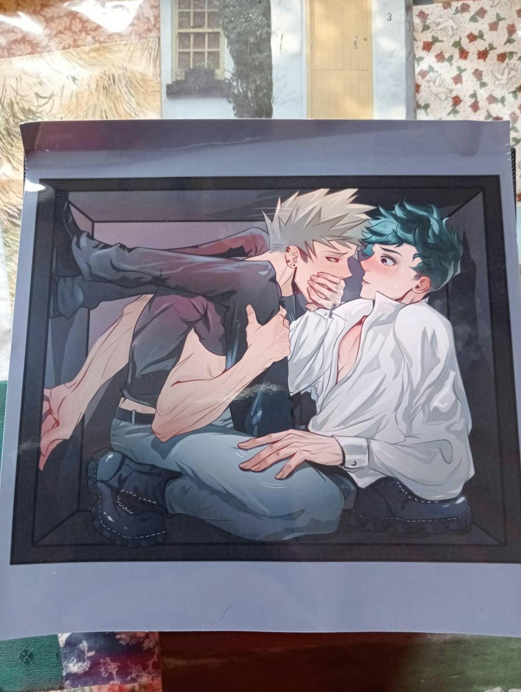 An idol and rock star are hiding from the paparazzi. The greenlet young man insists that they can't be seen together, to avoid rumours, but rockstar Dynamite is definitely enjoying the current situation and position😏🤝